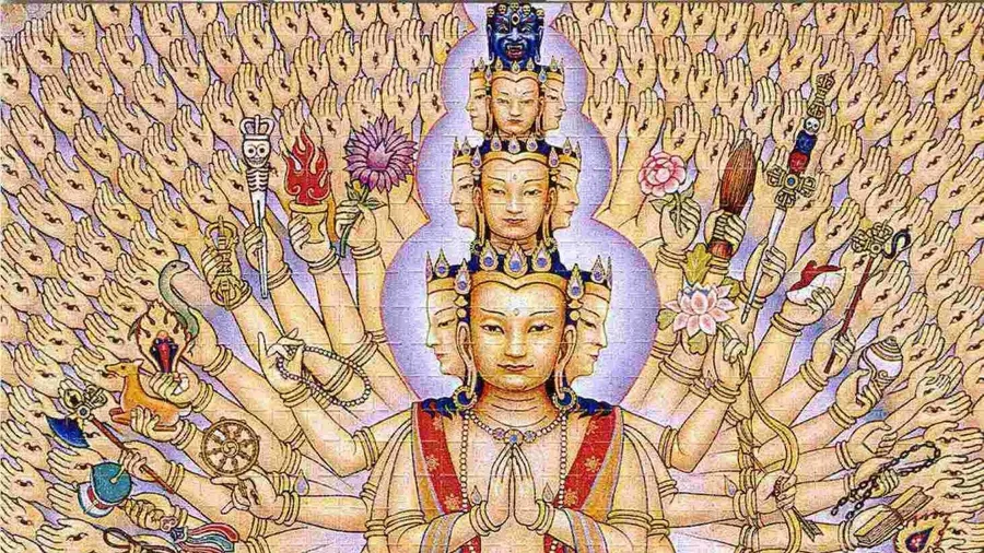 A Painting Of Buddha With Many Arms Wallpaper