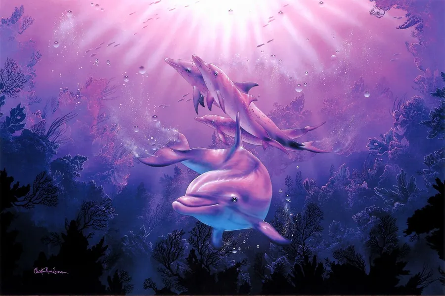 Related A Painting Of Two Dolphins Swimming In The Ocean Wallpaper
