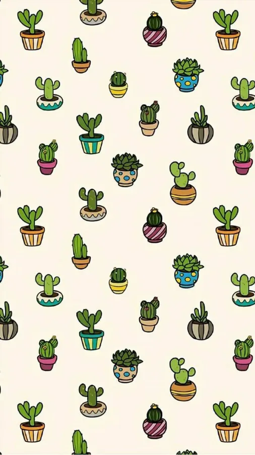 A Pattern Of Cactus Plants In Pots Wallpaper -