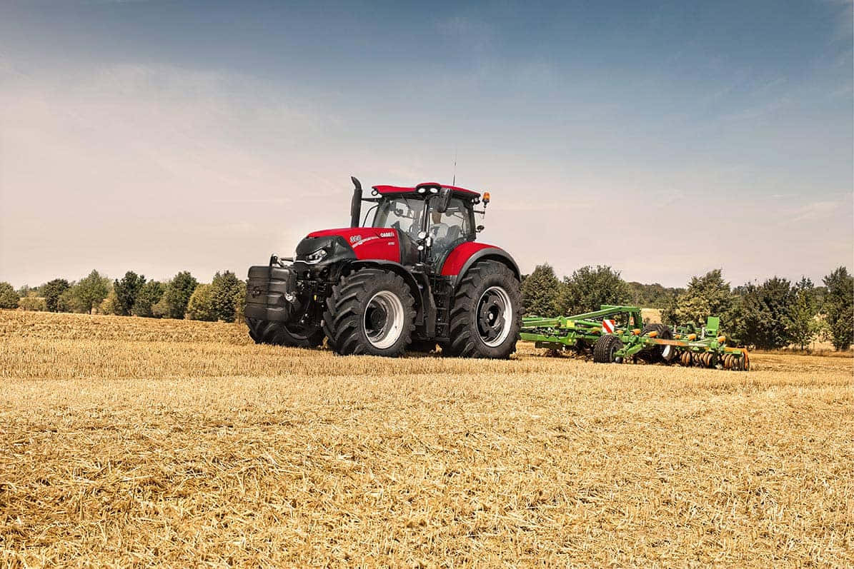 A Tractor In A Field With A Sunset Behind It Wallpaper -
