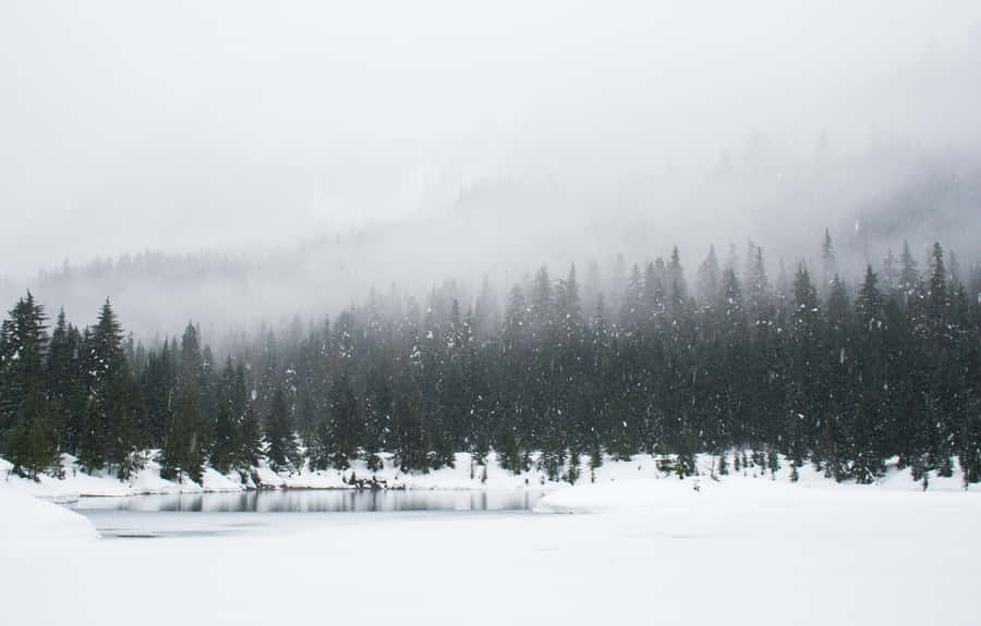 Enjoy The Serene Beauty Of A Winter Wonderland With This Stunning Desktop Wallpaper Wallpaper -
