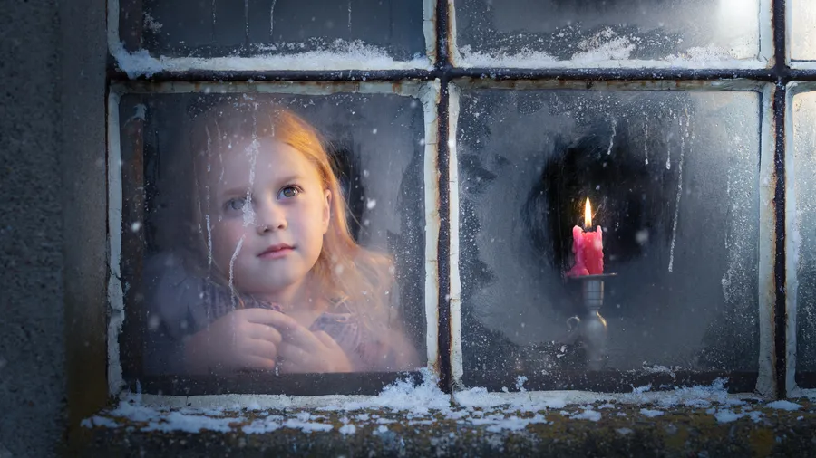 A Lantern Is Sitting On A Snow Covered Window Sill Wallpaper -