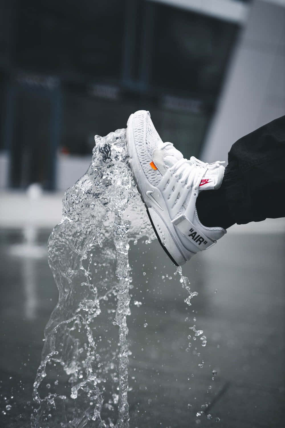 A Person Is Standing In Front Of A Fountain With A Pair Of Sneakers Wallpaper