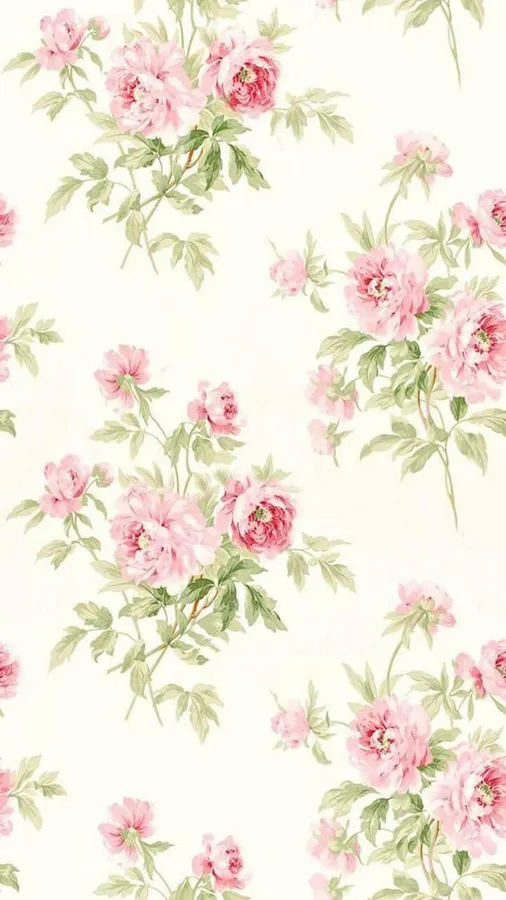 Related A Pink Floral Wallpaper With Green Leaves Wallpaper