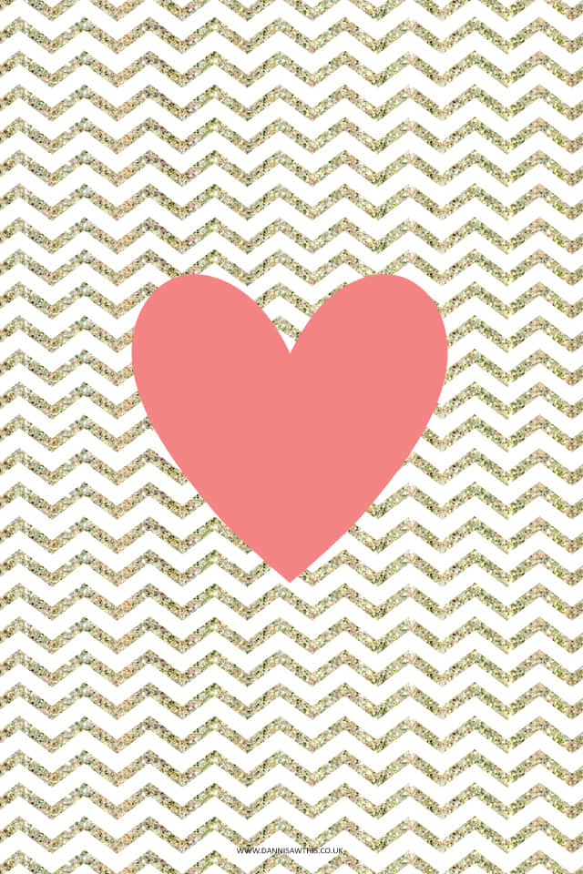 Related A Pink Heart On A Gold Chevron Background Wallpaper