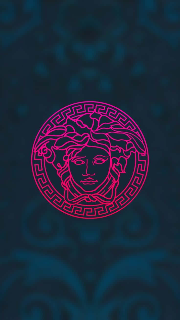 A Pink Logo With A Blue Background Wallpaper