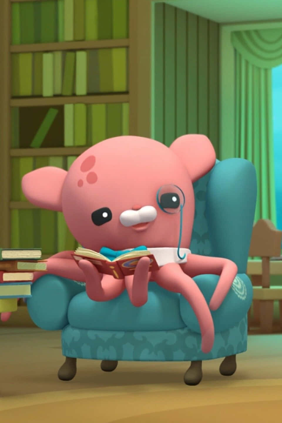 Related A Pink Octopus Sitting In A Chair Reading A Book Wallpaper
