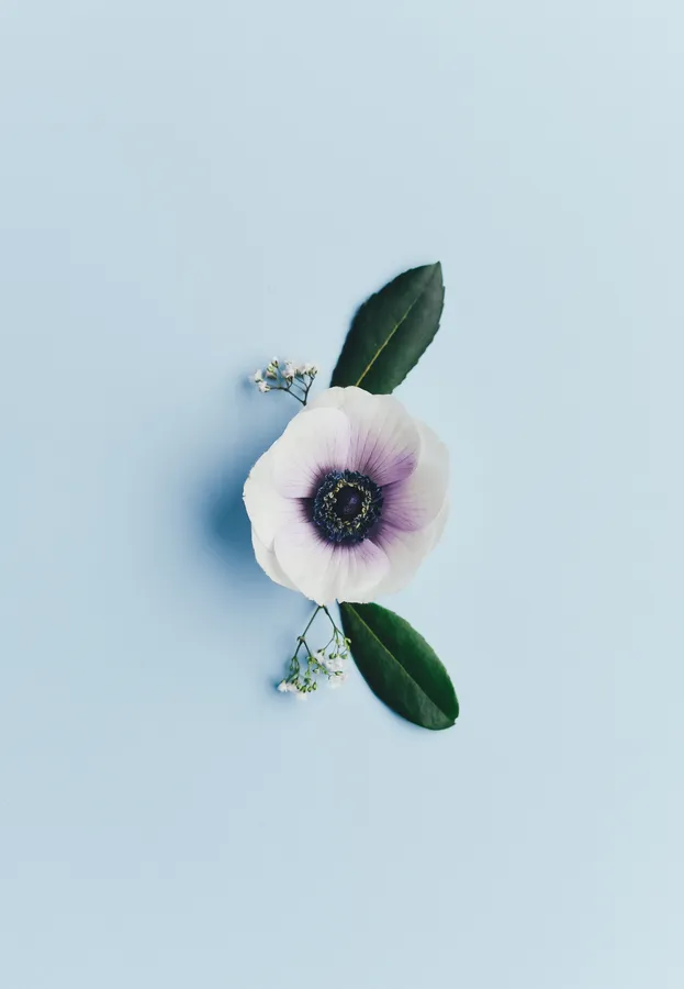 Related A Purple Flower With Leaves On A Blue Background Wallpaper