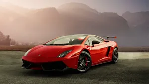 Related A Red Sports Car Parked In A Field With Cherry Trees Wallpaper