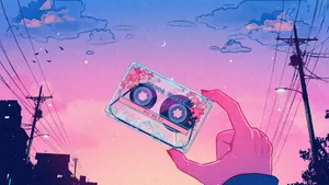 A Retro Gameboy With Flowers And Leaves On A Colorful Background Wallpaper