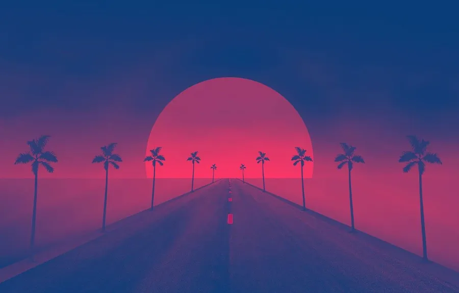 80s Vaporwave Retro Sunset Wallpaper -