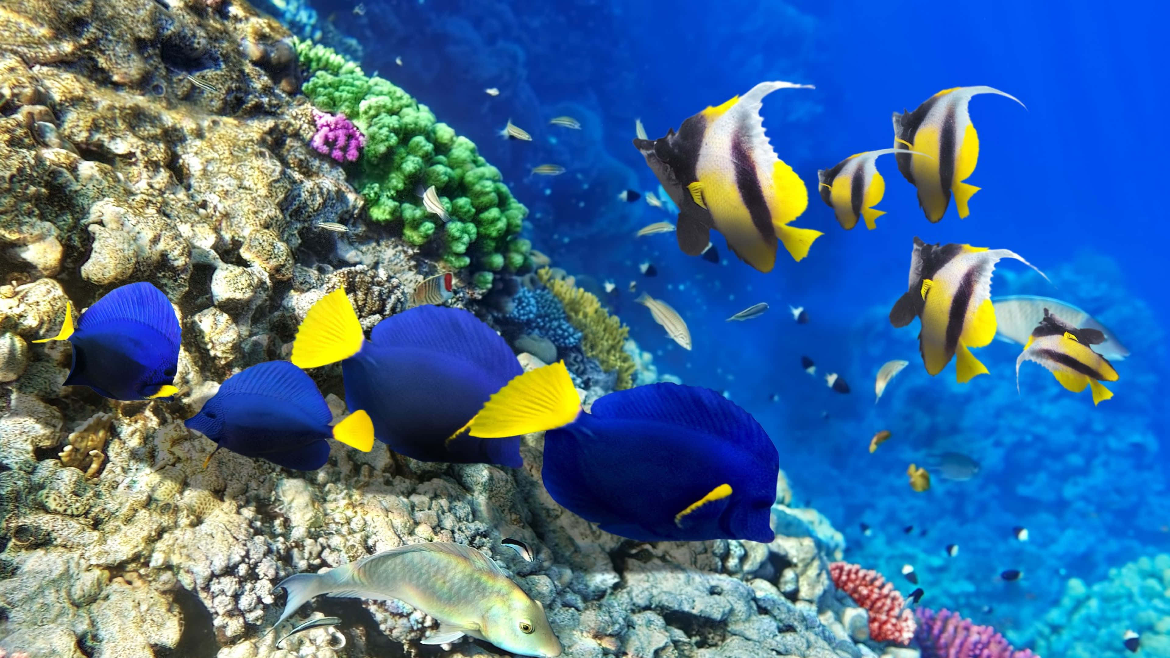 Colorful Fish Swim Together In A Tranquil 4k Underwater Environment Wallpaper -