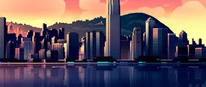 A Cityscape With A City At Sunset Wallpaper -