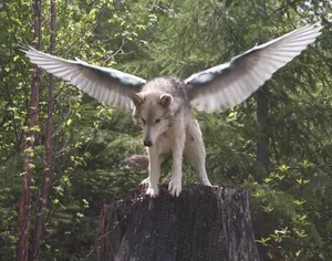 Unleash The Power Of The Winged Wolf Wallpaper -