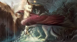 A Majestic Winged Wolf Stands In The Wilderness Wallpaper -