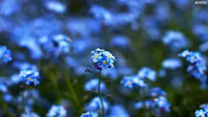 Blue Flowers In The Field With Dark Background Wallpaper -