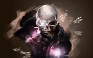 A Skull With Glowing Eyes And A Menacing Smile, Representing The Power Of Death. Wallpaper