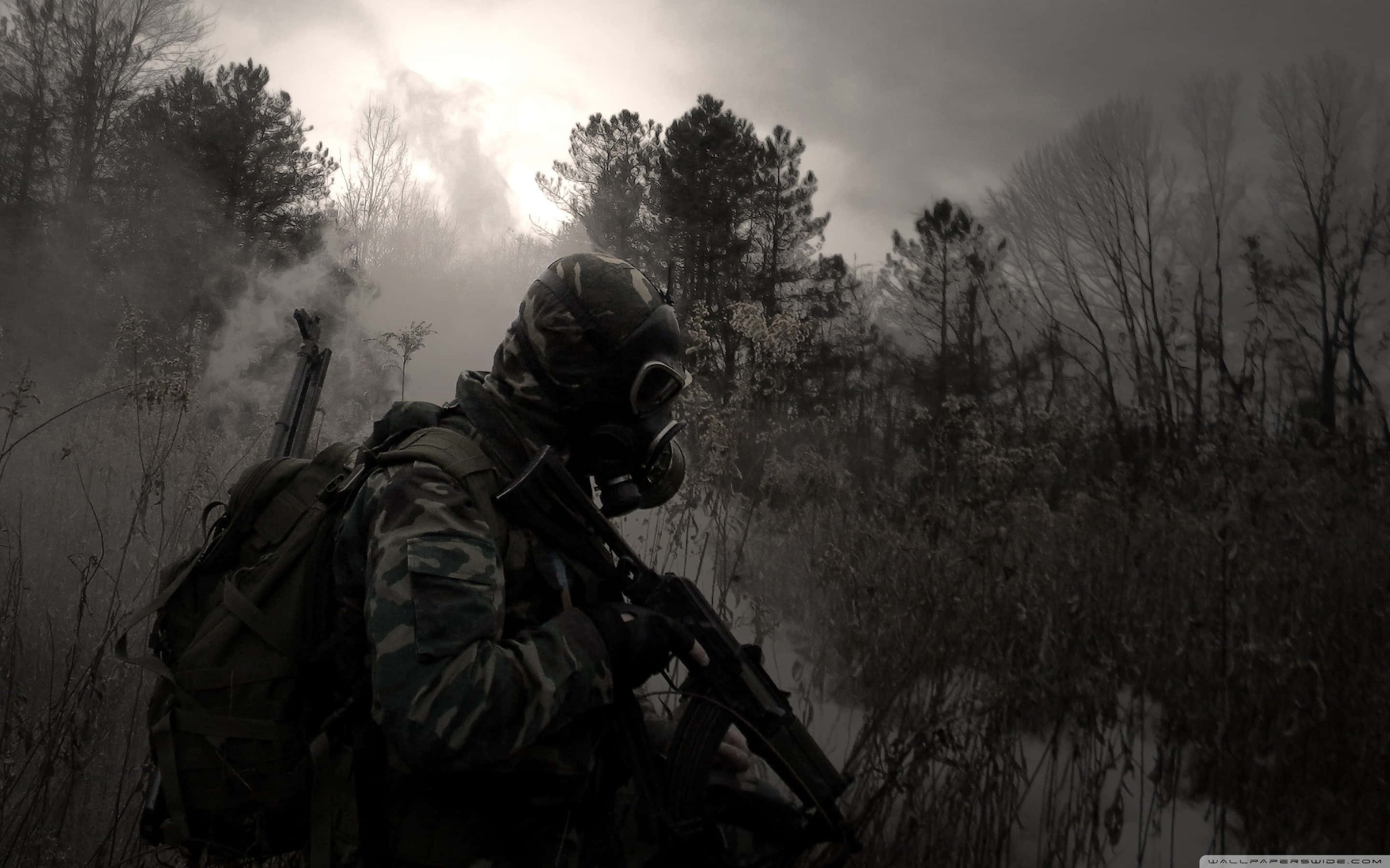 A U.s. Soldier Braves Battlefield Conditions Wallpaper -