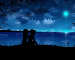 An Enchanting Anime Landscape Of Rich Blues. Wallpaper -