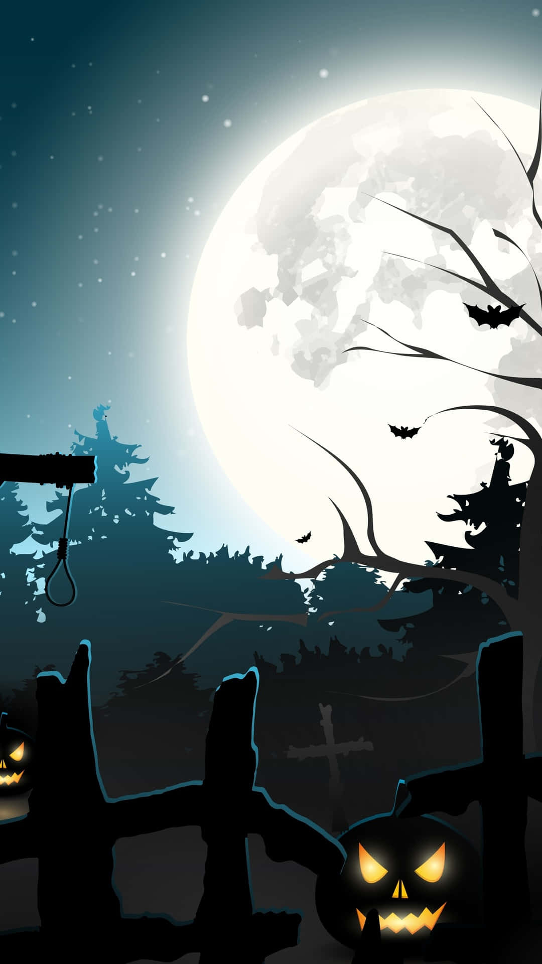 A Spooky Halloween Graveyard Surrounded By Autumn Trees Wallpaper