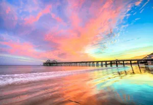 Malibu Beach Sunrise Desktop Long Bridge Wallpaper -