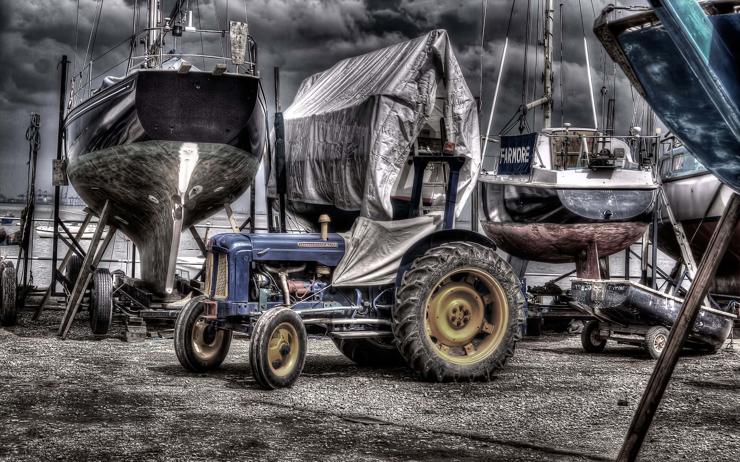 A Tractor Is Parked In A Field With A Cloudy Sky Wallpaper -