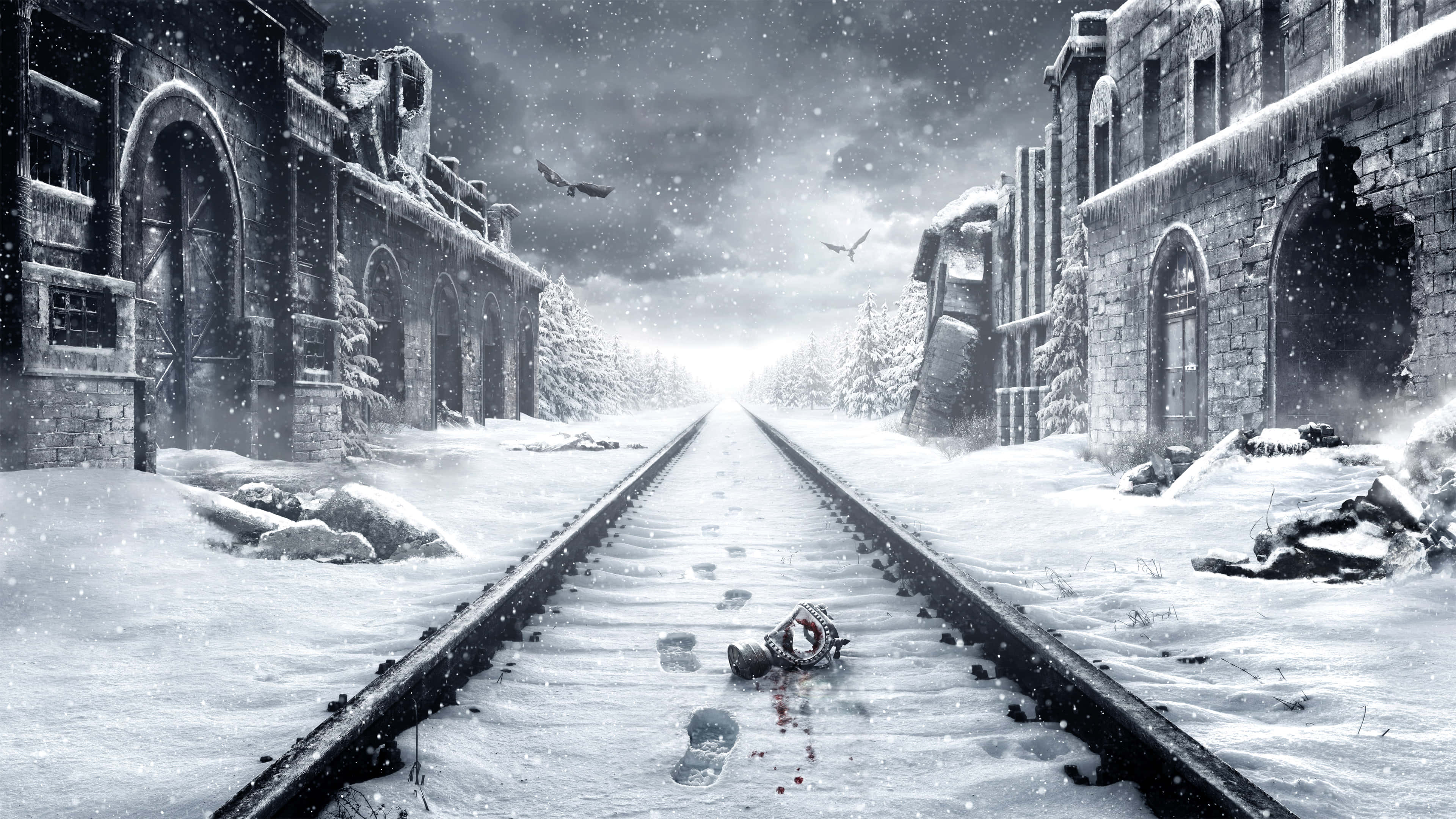 A Train Tracks With Snow And A Bloody Scene Wallpaper
