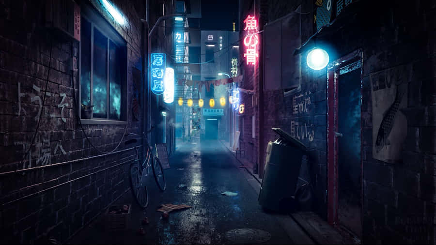 Dark Japanese Alleyway In Chiyoda Tokyo Japan Wallpaper -