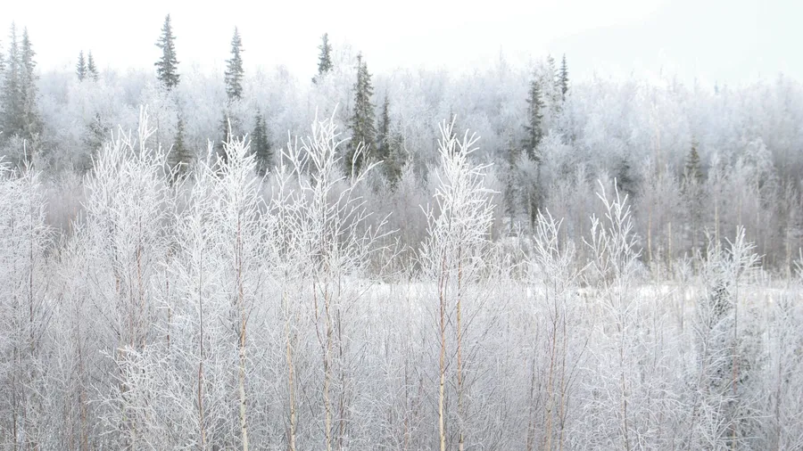 Related A Tranquil Snow-covered Forest During Winter Wallpaper