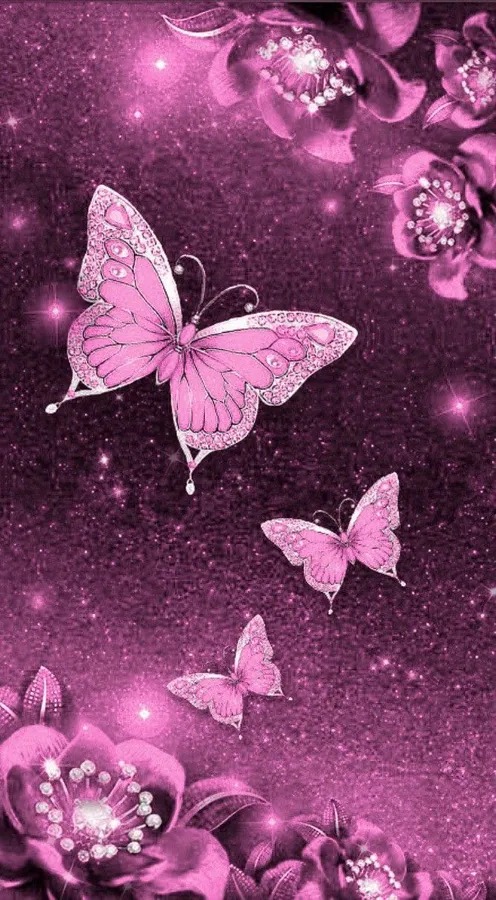 Shimmering Pink Glitter Butterfly Wallpaper -
