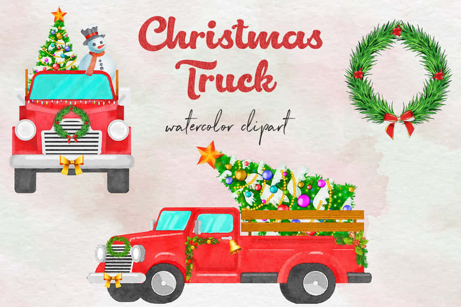 A Nostalgic Look Back Over The Holidays With A Bright, Vintage Truck. Wallpaper -