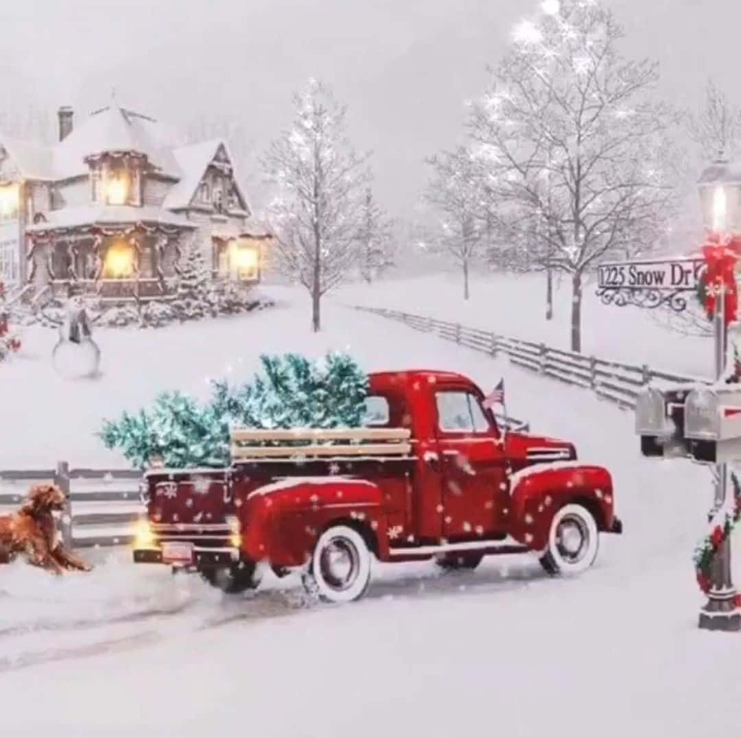 A Festive Christmas Scene With A Classic Vintage Truck. Wallpaper -