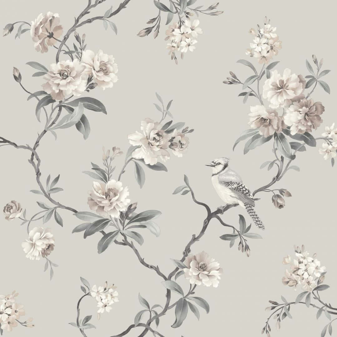 A Wallpaper With A Bird And Flowers Wallpaper -