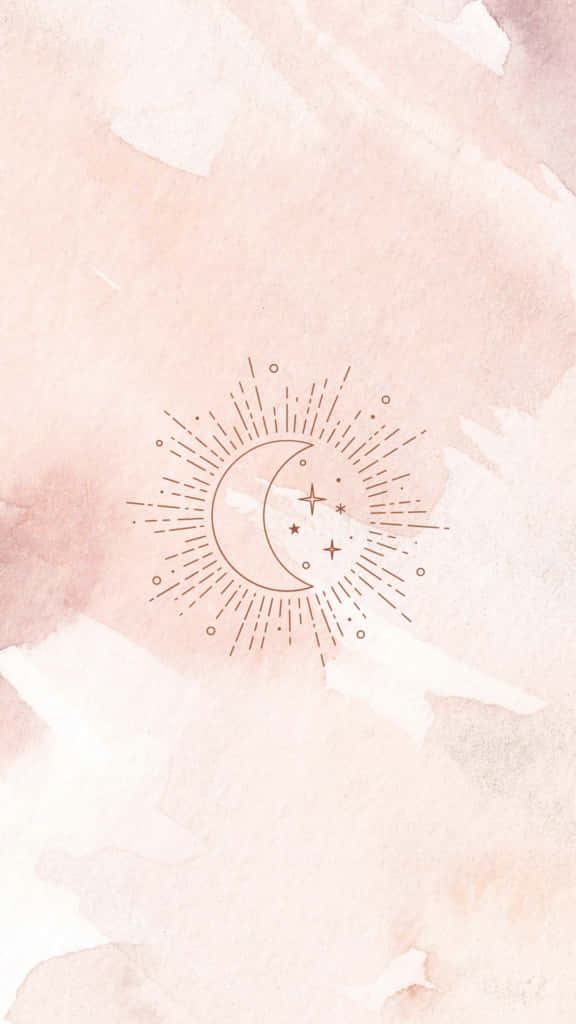 A Pink And Beige Background With A Rainbow And Sun Wallpaper -