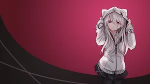 A Beautiful Anime Girl With Striking White Hair And A Pink Ribbon Wallpaper -