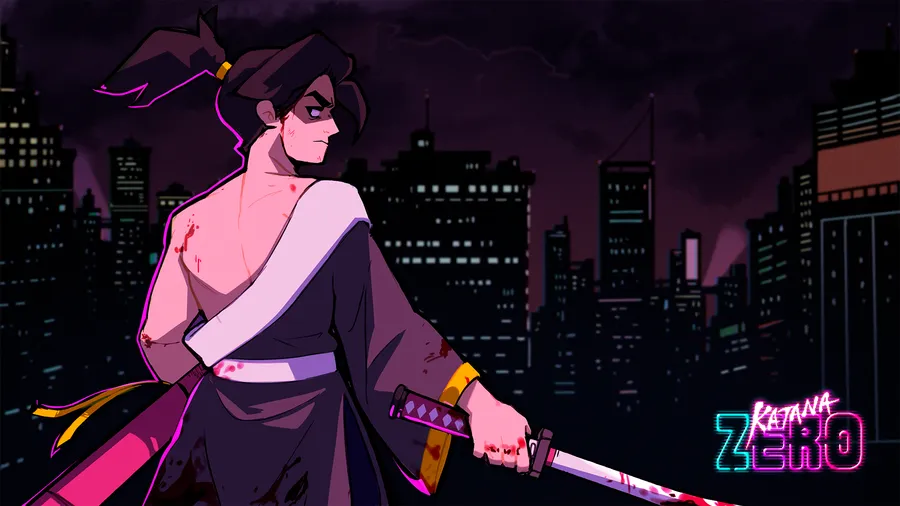 A Woman In A Kimono Holding A Sword In Front Of A City Wallpaper
