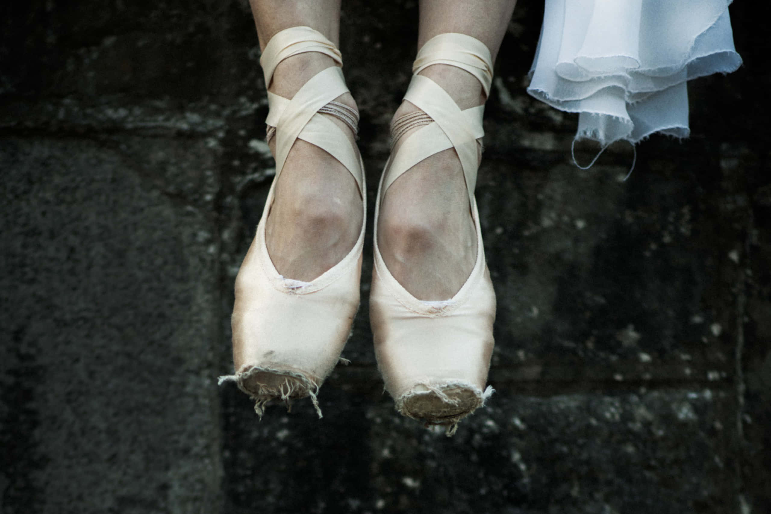 A Woman's Feet Are Shown In Pointe Shoes Wallpaper -