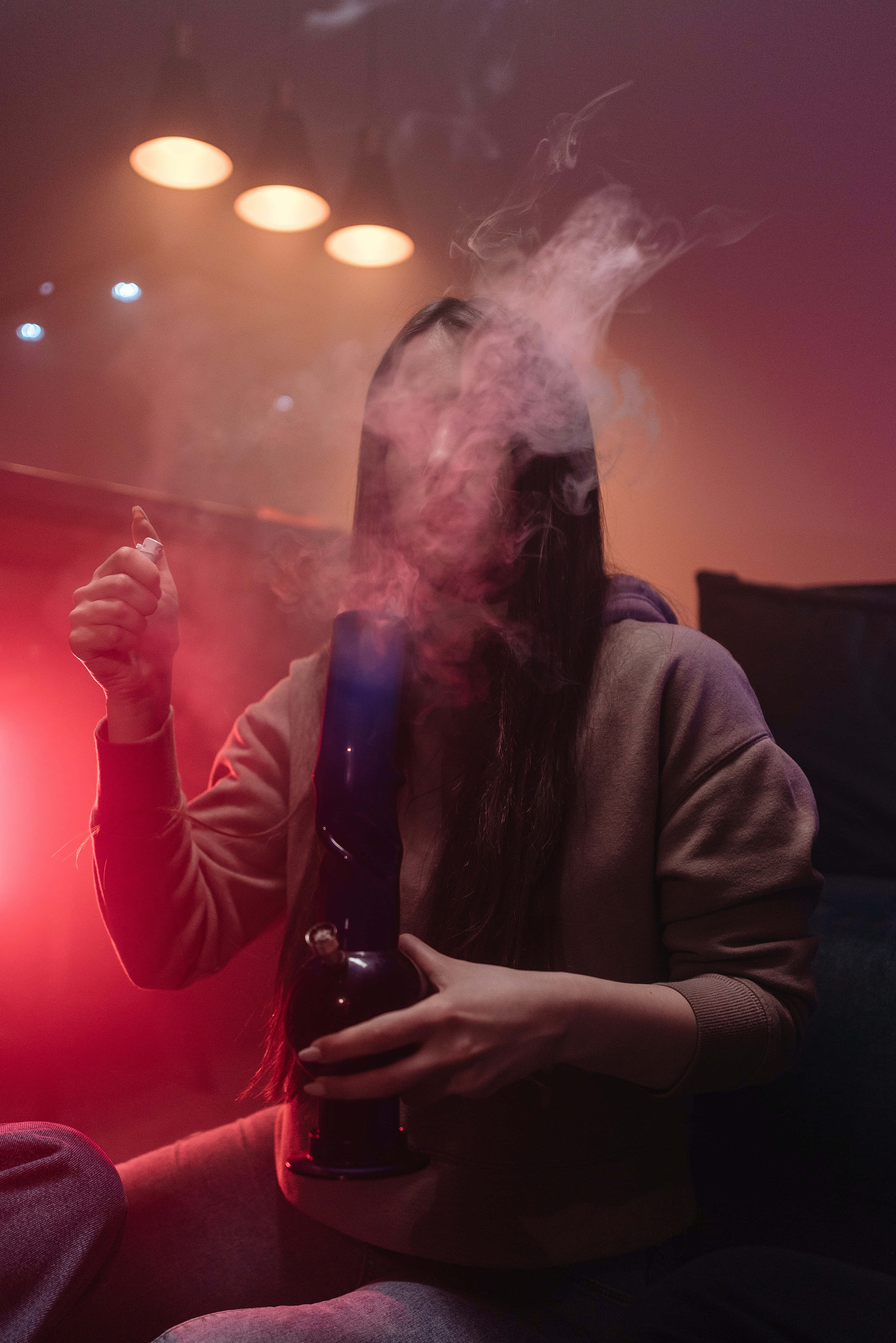A Woman Smoking A Vaporizer In A Living Room Wallpaper -