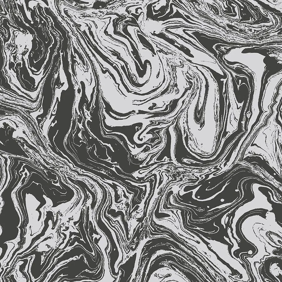 Black And White Scattered Fluid Lines Marble Wallpaper -
