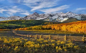 Celebrate The Beauty Of Fall Among Towering Mountains Wallpaper -