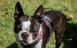 Playful Boston Terrier Ready For A Walk Wallpaper -