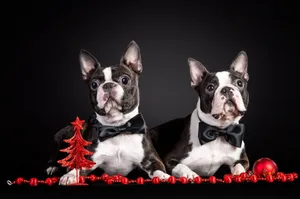 Two Boston Terrier Black And White Dogs Wallpaper -