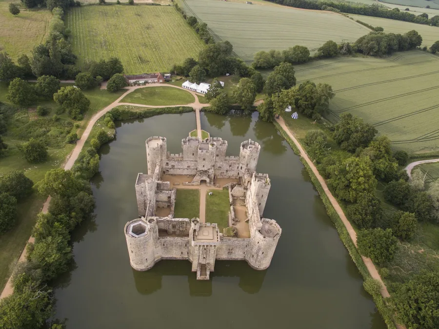 Moated Bodiam Castle In England Aerial Shot Wallpaper -