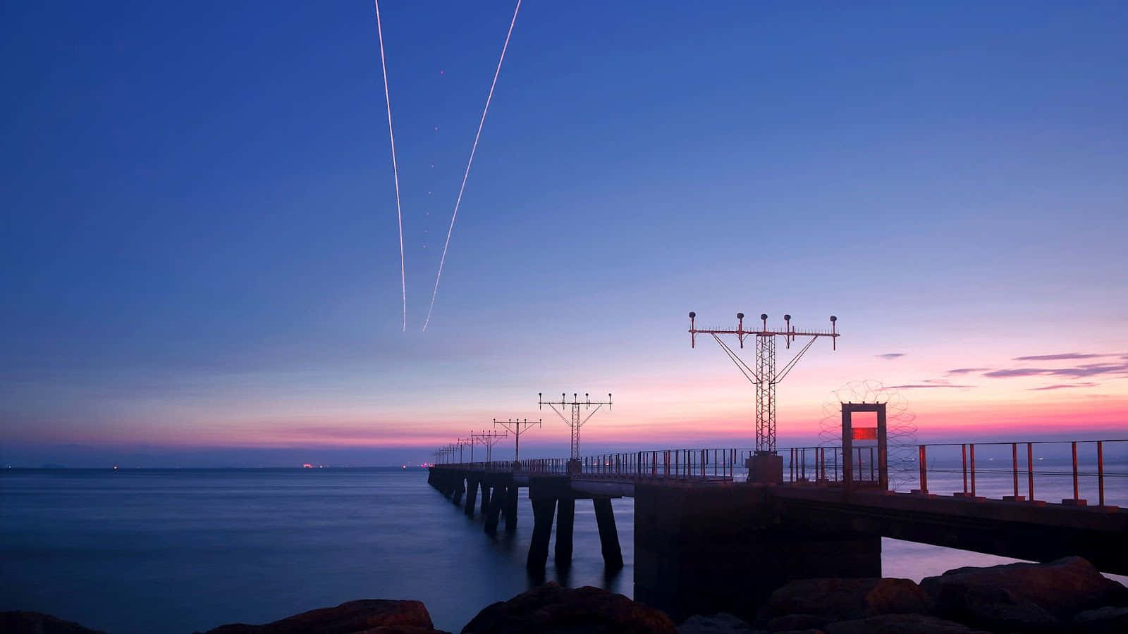 Aesthetic Beach Laptop Pier Sunset Wallpaper -