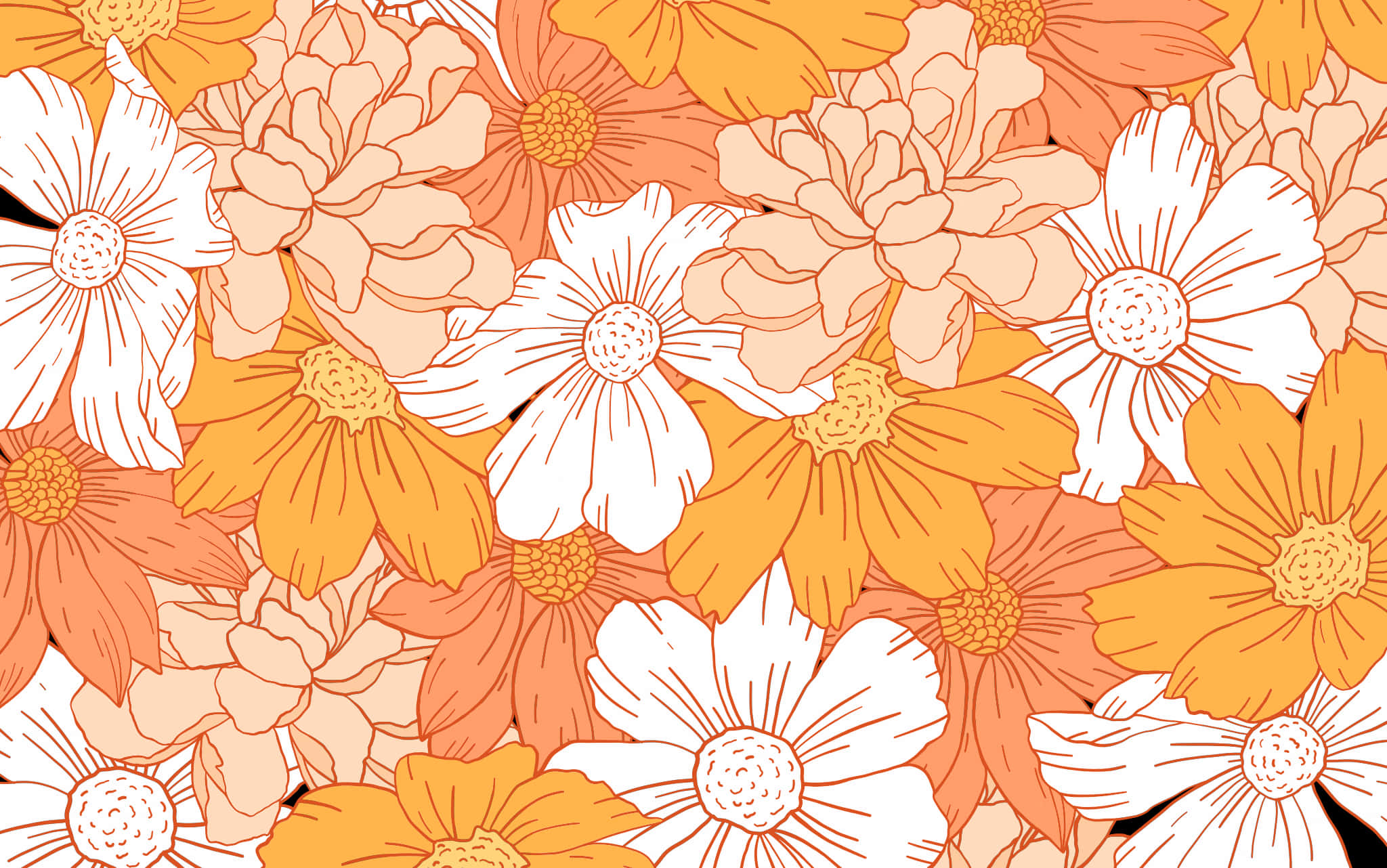 Soft Aesthetic Flower And Leaf Seamless Computer Wallpaper -