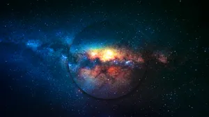 Ball Inside Rings In Galaxy Background Wallpaper -