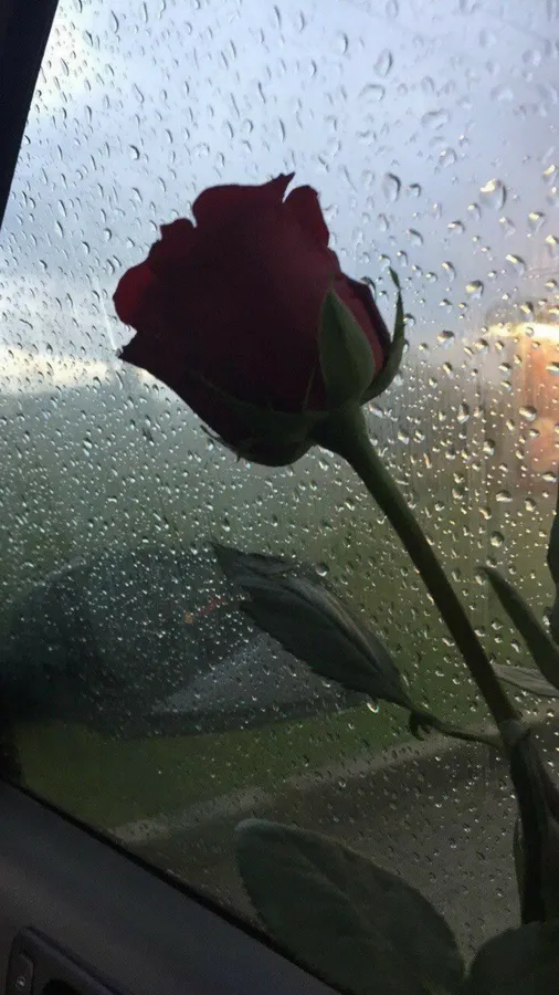 Related Aesthetic Rainy Window And A Red Rose Wallpaper