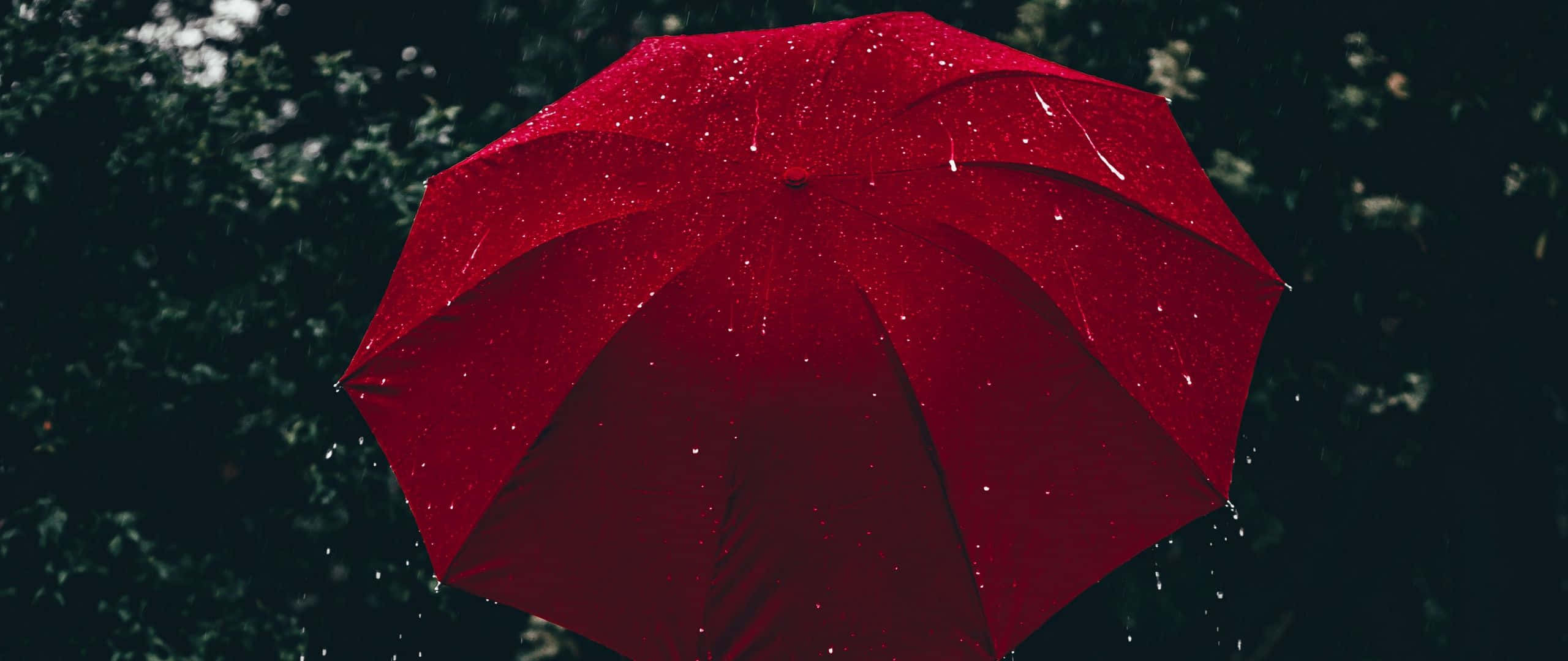 Aesthetic Red Umbrella In The Rain Wallpaper