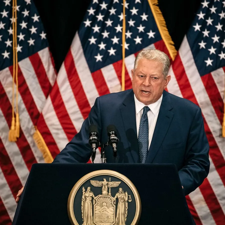 Al Gore Delivering A Speech On An American Themed Podium. Wallpaper -