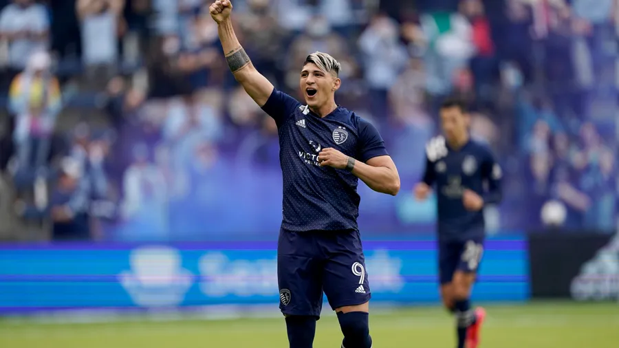 Sporting Kansas City's Alan Pulido In Full Swing Wallpaper -